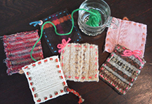 いろいろな柄の編み地を再利用して、かわいいコースターを親子で作るワークショップです!