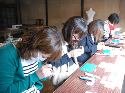 講師は朝日村の「山のはんこ屋 のら猫工房」のやざきなおみさんです。会場は中町のセレクトショップ「fennel」2階の「fennel gallery」。以前はテーラーSANROKUの工房として使われていた場所で、その時代の趣を感じられる、素敵な空間です。